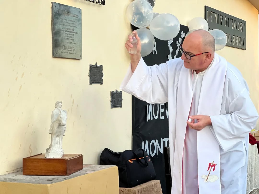La obra fue realizada por el escultor Julio Esteban Incardona y entregada personalmente como parte de una iniciativa gestionada por el intendente Cicarelli. El gesto fue recibido con emoción por la comunidad educativa, que celebró el encuentro con un acto y una misa.