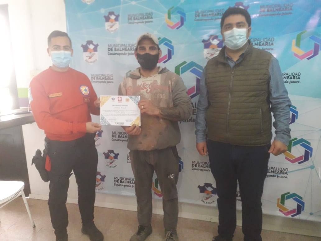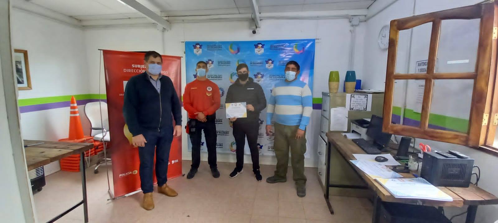 El intendente Miguel Méndez acompañado por el secretario de Gobierno, Lucas Palacios y el Comisario Fernando Bazán participaron este viernes de la entrega de certificados del Curso de Reanimación Cardiopulmonar (RCP) realizada al personal del Corralón Municipal, como también Guardia Urbana y Tránsito.