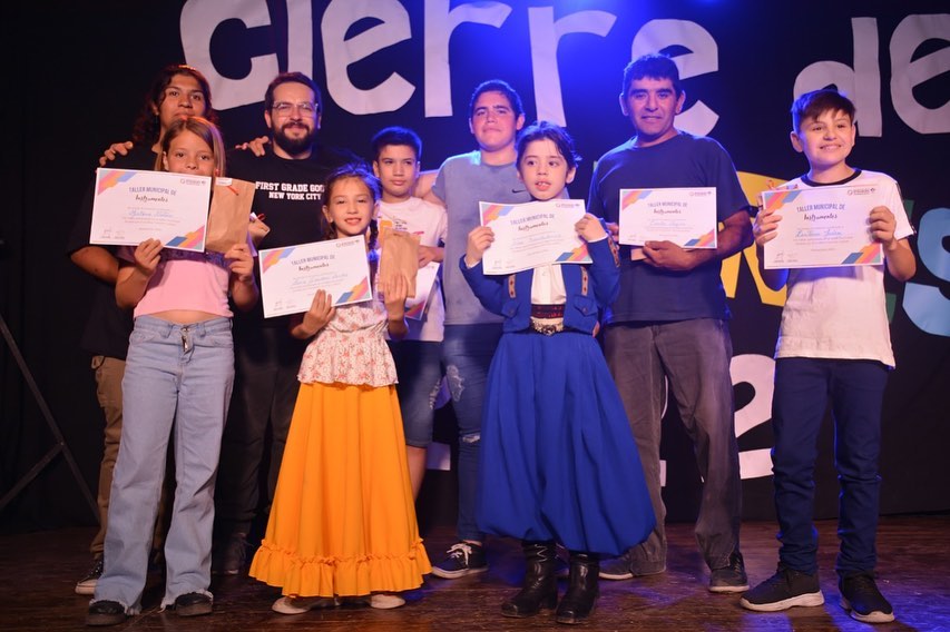 El intendente Miguel Méndez y la secretaria de Cultura, Juliana González fueron los encargados de entregar los diplomas y reconocimientos a los alumnos y profesores de los siguientes talleres: Vitrofusión, Manualidades y Artesanías, Dibujo y Pintura, Canto: Niños y Adultos. Taller de Instrumentos para Niños y Adultos, Zapateo y Malambo, Escuela de Folklore Infantil y Coro Municipal de Adultos.